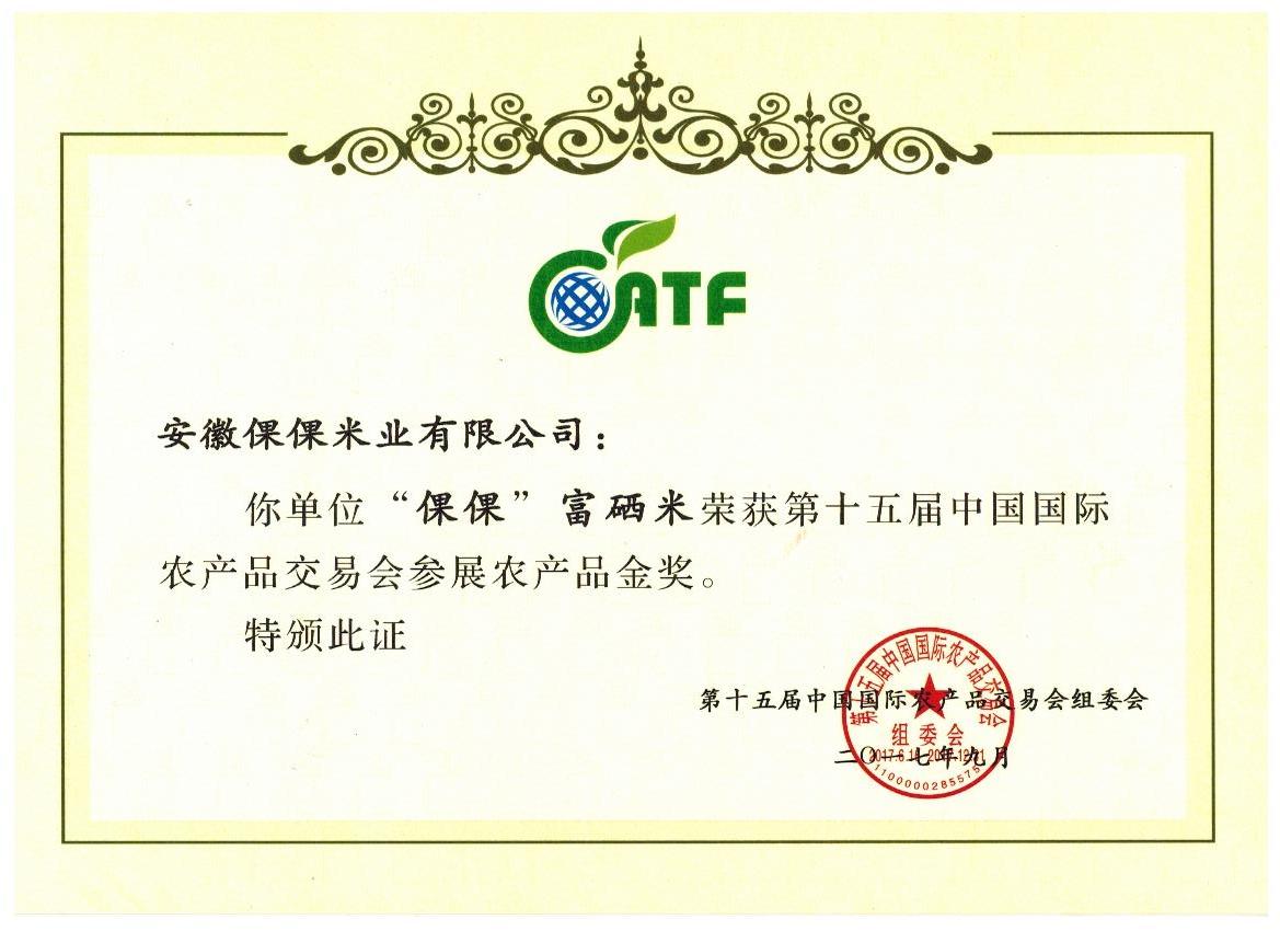 資質(zhì)認(rèn)證 第十五屆中國(guó)國(guó)際農(nóng)產(chǎn)品交易會(huì)金獎(jiǎng)